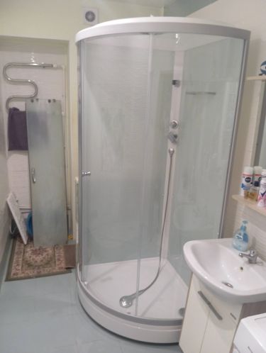 Соберём и установим кабину, обработаем герметиком, подключим смеситель и душ. Работу выполним за 2–4 часа. Будем перекрывать воду.